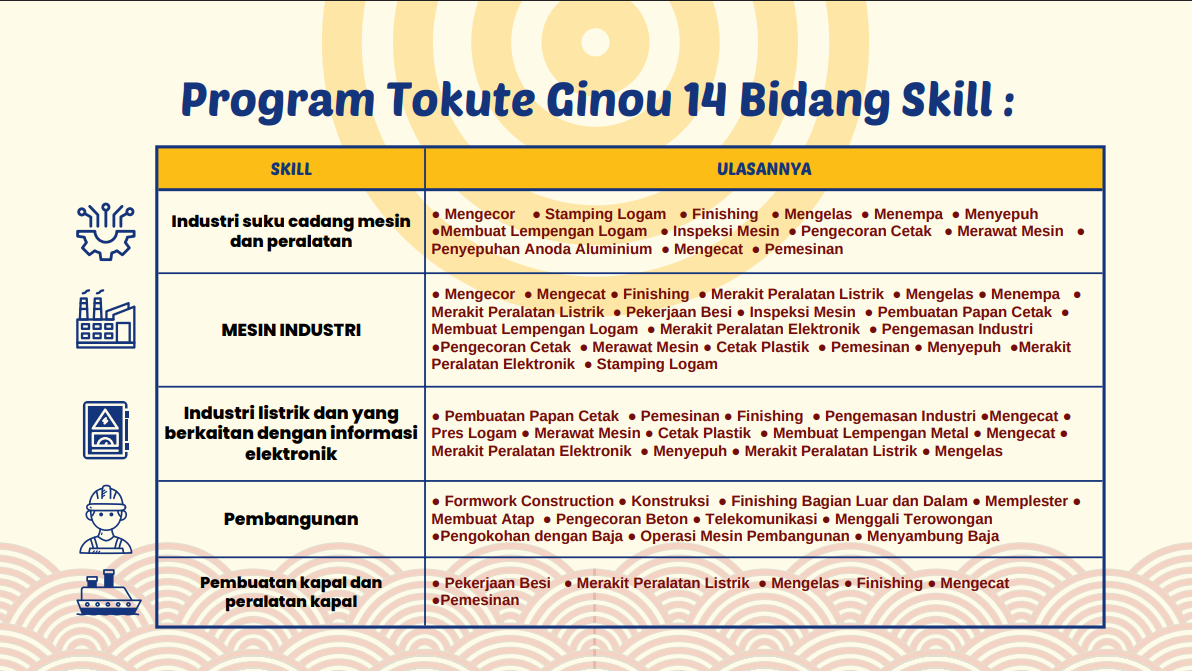- Memperoleh keterampilan khusus dan peluang belajar bahasa dan budaya : Pekerja di Jepang dapat memperoleh keterampilan khusus dan peluang belajar bahasa dan budaya.